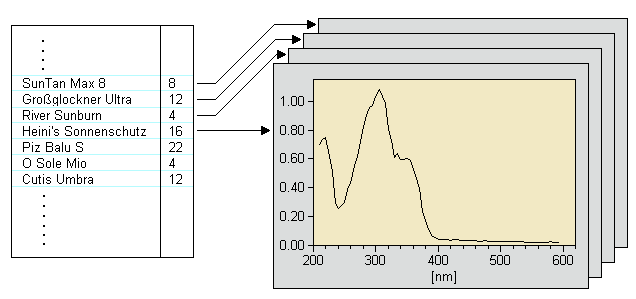 Nehmen Sie an, Sie hätten 100 verschiedene Sonnencremes. Der Lichtschutzfaktor (engl. light protection factor, LPF) wird durch den Hersteller angegeben und auf das Etikett der Tube gedruckt. Als Wissenschaftler, der die Richtigkeit des angegebenen Lichtschutzfaktors überprüfen soll, haben Sie zwei Möglichkeiten: (1) Sie können eine der Standardmethoden zur Messung des Lichtschutzfaktors einsetzen. Diese Verfahren benötigen viel Zeit, sind teuer und bergen Gesundheitsrisiken für die Testpersonen. (2) Sie können das Spektrum des Sonnenschutzmittels messen und ein Modell aufstellen, das das Spektrum mit dem Lichtschutzfaktor in Zusammenhang bringt. Danach können Sie das Modell zum Screening von unbekannten Proben anwenden. Klicken Sie auf die Abbildung unten, um die einzelnen Schritte im Detail zu sehen.
