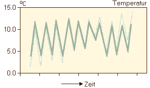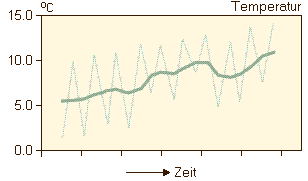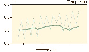 Misst man die Temperatur zweimal am Tag, könnte die resultierende Zeitreihe etwa wie folgt aussehen: