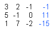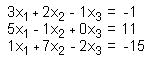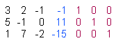 From this aligned system of equations we extract the coefficients on the left side, and the constants on the right side (blue) to form a rectangular matrix: ![]() If we need for some reason the inverse of the coefficient matrix, we also have to add the identity matrix (red), so that we finally start with the following matrix: ![]() In order to solve this system, we have to apply equivalence operations in such a way that the black square sub-matrix becomes the identity matrix. In doing so, we obtain the following matrix: