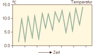 Misst man die Temperatur zweimal am Tag, könnte die resultierende Zeitreihe etwa wie folgt aussehen: